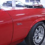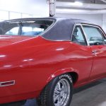 The exterior of this 1972 Chevrolet Nova SS is finished in a bold and eye-catching red, which beautifully highlights its muscular lines and iconic silhouette. The striking color choice is a statement in itself, making this car stand out among the crowd and turning heads wherever it goes. Complementing the vibrant exterior, the interior is elegantly appointed in black, offering a sleek and sophisticated cabin that perfectly complements the car’s exterior aesthetics.